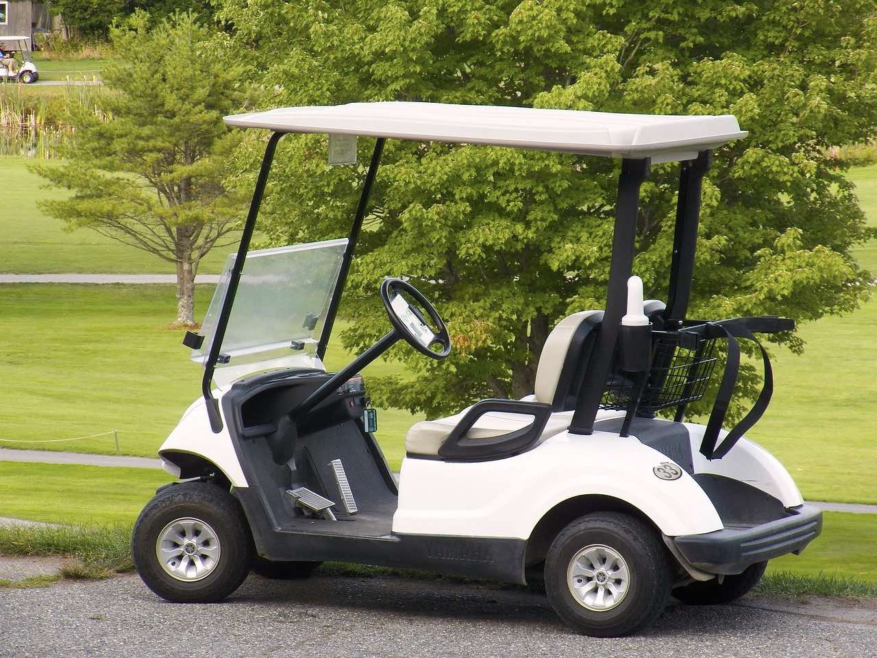 Golf Cart Notice: Golf carts must stop at road crossings and yield to cars.